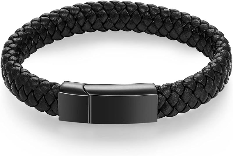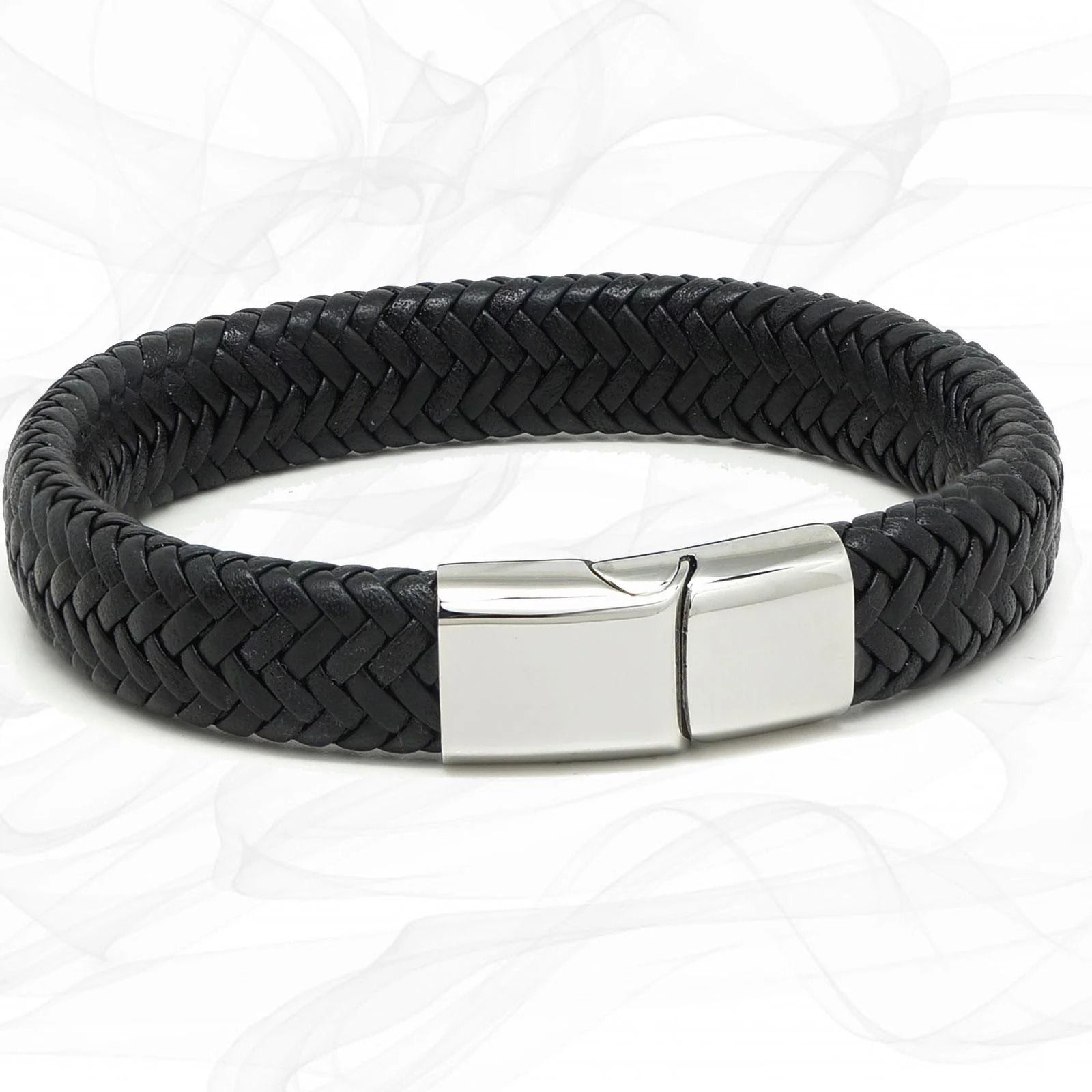 AV Leather Clasp Bracelet Black on Silver - $45