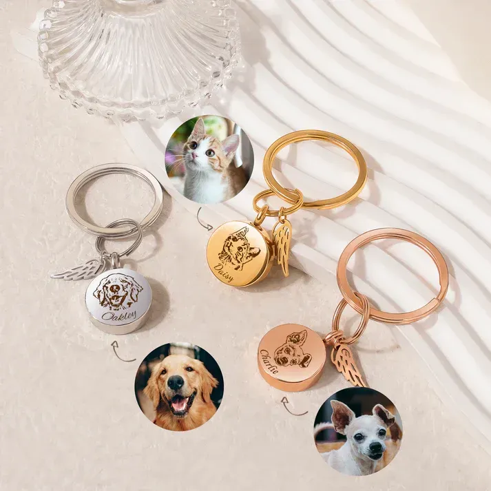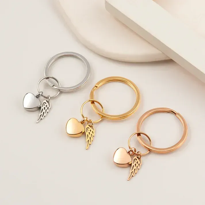 AV Mini Heart with Angel Wing Charm Memorial Key Chain - $30